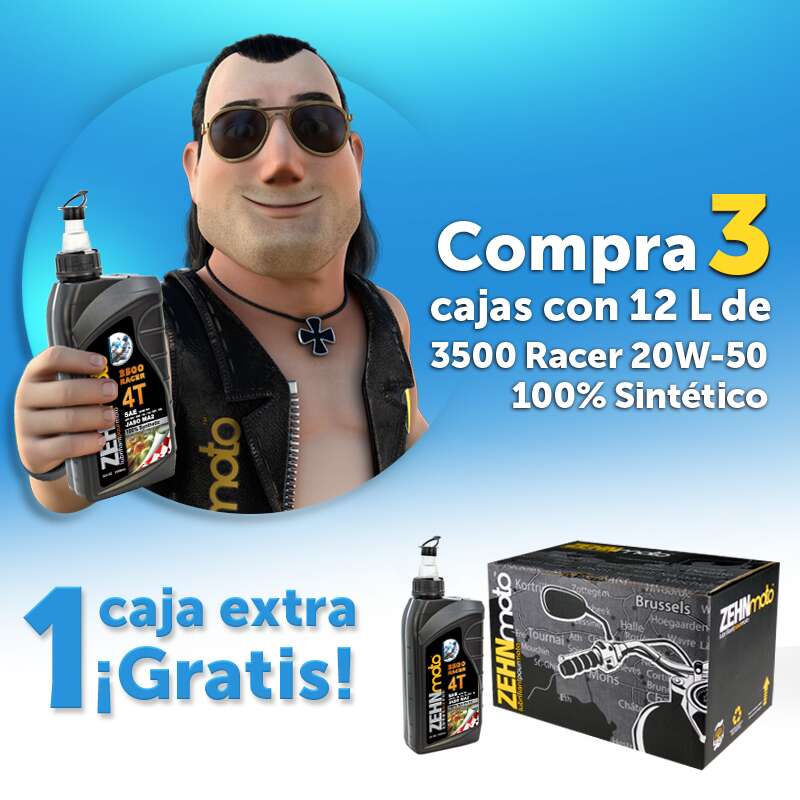 3 Cajas Aceite Zehnmoto 20w50 SP 3500 Racer Sintetico +1 Caja Igual Con 12 Gratis